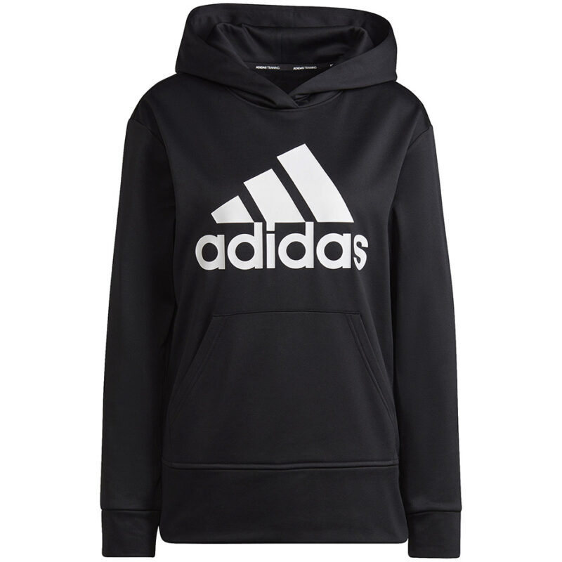 Bluza damska adidas będzie niezbędna podczas aktywności. Standardowy krój. Szybkoschnący materiał. Technologia Aeroready odprowadza nadmiar wilgoci. Wnętrze o strukturze frotte. Frontowa kieszeń. Duże logo adidas z przodu. Tył bluzy bez napisów i motywów. Małe logo przy mankiecie lewego rękawa. Kaptur bez regulacji.