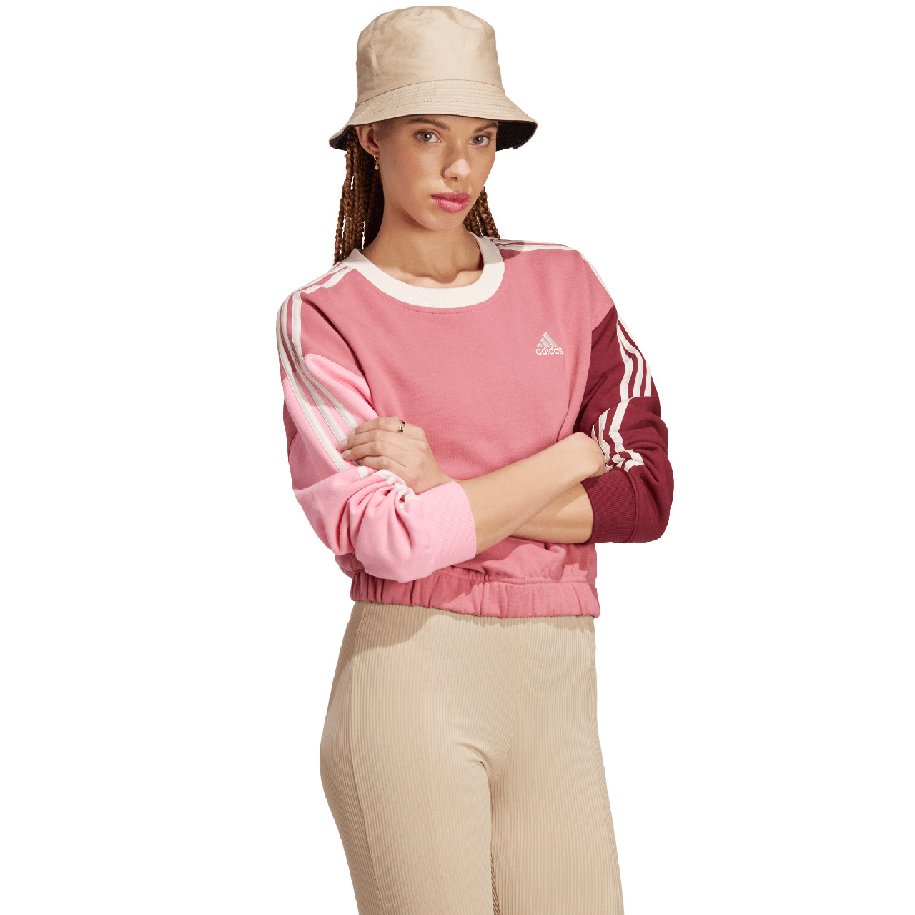 Bluza damska adidas Essentials 3-Stripes Crop różowa IC9875