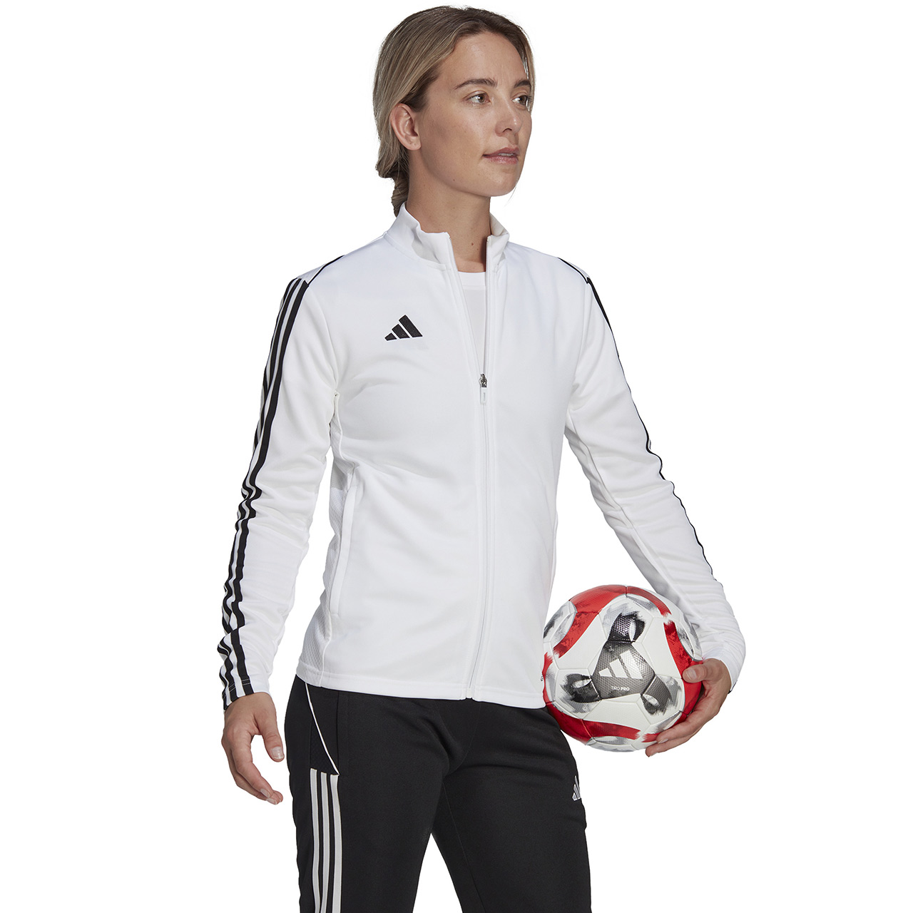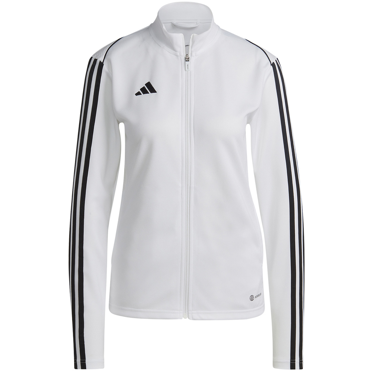 Bluza piłkarska adidas przeznaczona dla kobiet sprawdzi się podczas treningów. Wysoka stójka. Zamek na całej długości. Dopasowany krój. Technologia Aeroready pomaga osuszać skórę i zwiększa wygodę. Paski na rękawach. Subtelne logo. Szybkoschnące włókna. Drobnowzorzysta grafika na plecach.