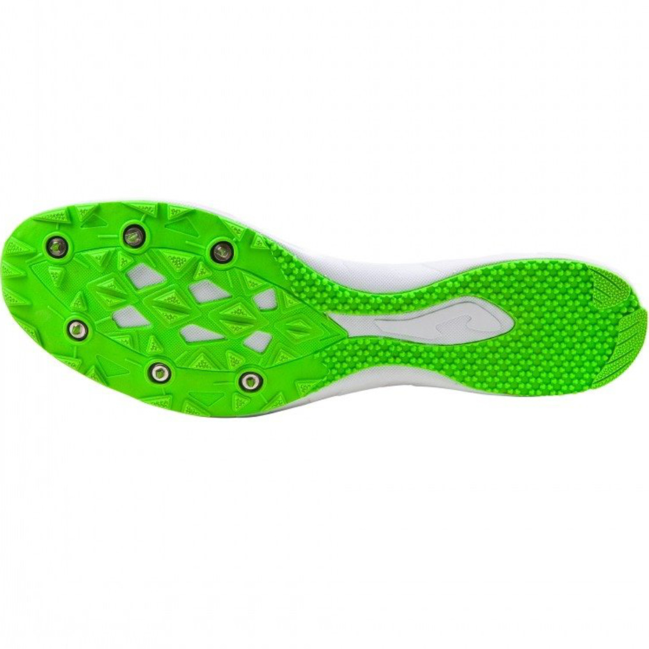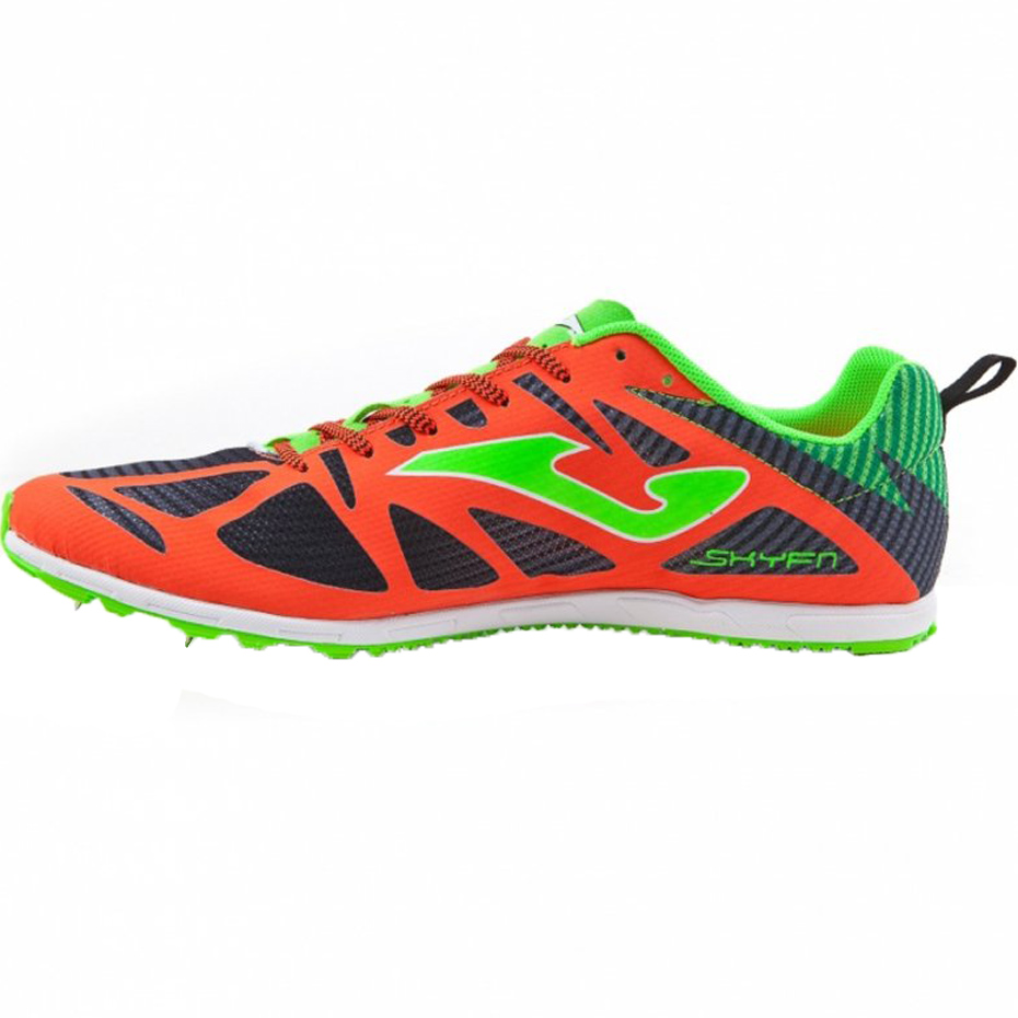 Męskie buty do biegania od znanej, hiszpańskiej firmy Joma. Buty doskonale nadają do biegów cross country oraz średnio i długo dystansowych biegów na torze. Buty wykonane są z wysokiej jakości materiałów co zapewnia ich dużą wytrzymałość. Dodatkowo wyróżniają się niezwykłą lekkością, jeden but waży około 169 gram. W skład kompletu wchodzą: buty, dwa komplety kolców 6 i 9 milimetrów, kluczyk do przykręcania kolców do podeszwy, dodatkowe sznurówki.