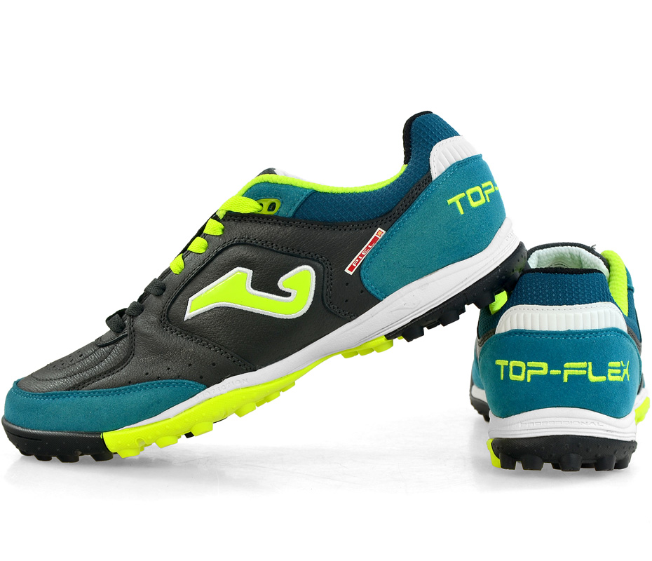Męskie buty piłkarskie Top Flex firmy Joma. Buty przeznaczone są do gry na orlikach oraz innych boiskach ze sztuczną trawą. Model jest bardzo lekki, wykonany z elastycznej nieimpregnowanej skóry naturalnej. Pozwala to na idealne dopasowanie do stopy, zapewniając właściwe trzymanie i precyzyjne ruchy.