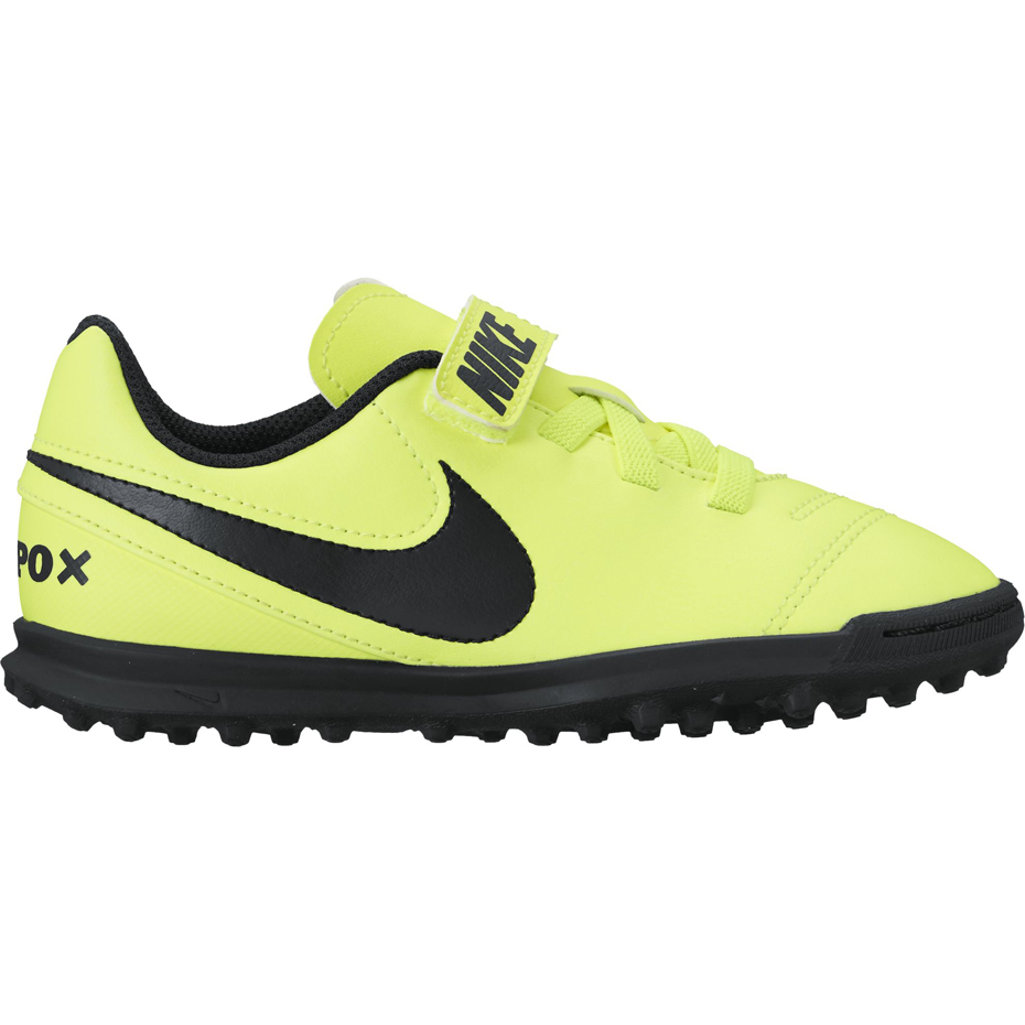 Juniorskie buty piłkarskie Nike Tiempo X Rio III TF z nowej  kolekcji Radiation Flare Pack 2017. Dedykowane są do rozgrywek na nawierzchnię typu turf. Cholewka ze skóry syntetycznej. Wkładka EVA o wysokiej gęstości daję dynamiczną amortyzację. Model wyposażony został w specjalne zapięcie na rzep.