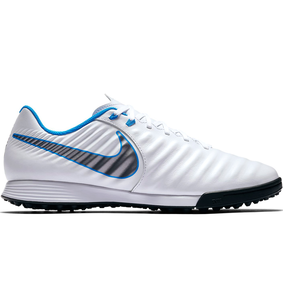 Męskie buty piłkarskie Nike Tiempo Legend 7 pochodzą z kolekcji Just Do It, które przeznaczone są do gry na sztucznej nawierzchni typu turf. Cholewka ze skóry cielęcej zwiększa kontakt z piłką. Specjalistyczna podeszwa z gumowymi kołkami gwarantuje przyczepność. Poziom: półamatorski.