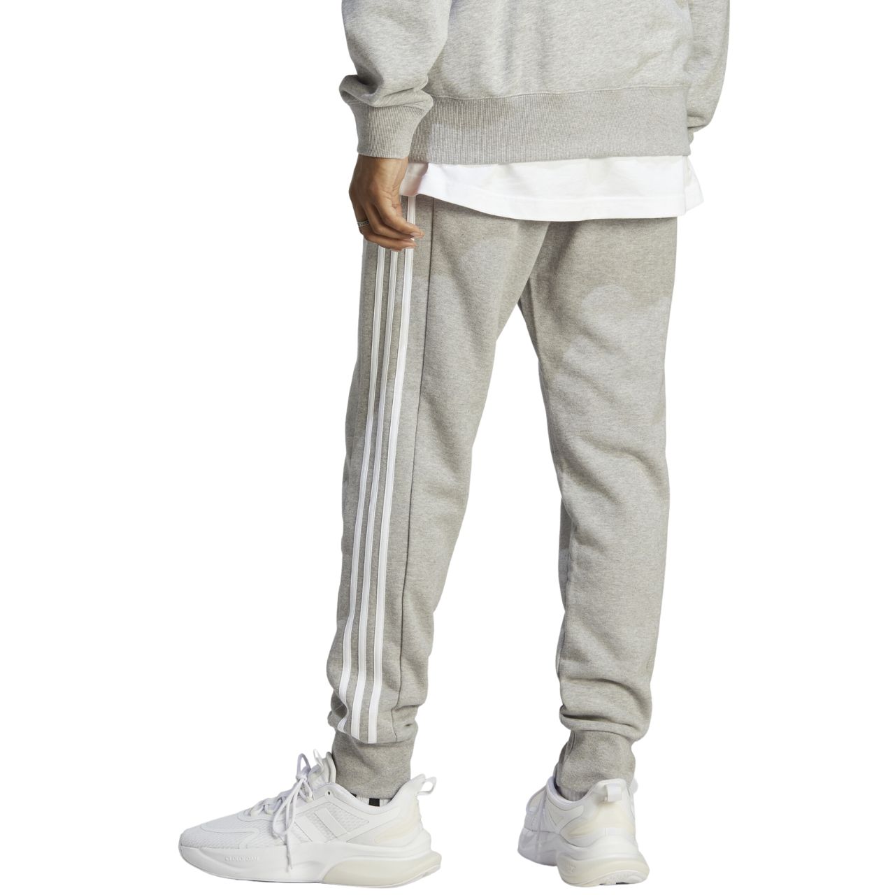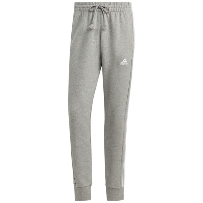 Spodnie męskie adidas Essentials French Terry Tapered Cuff 3-Stripes szare IC9407