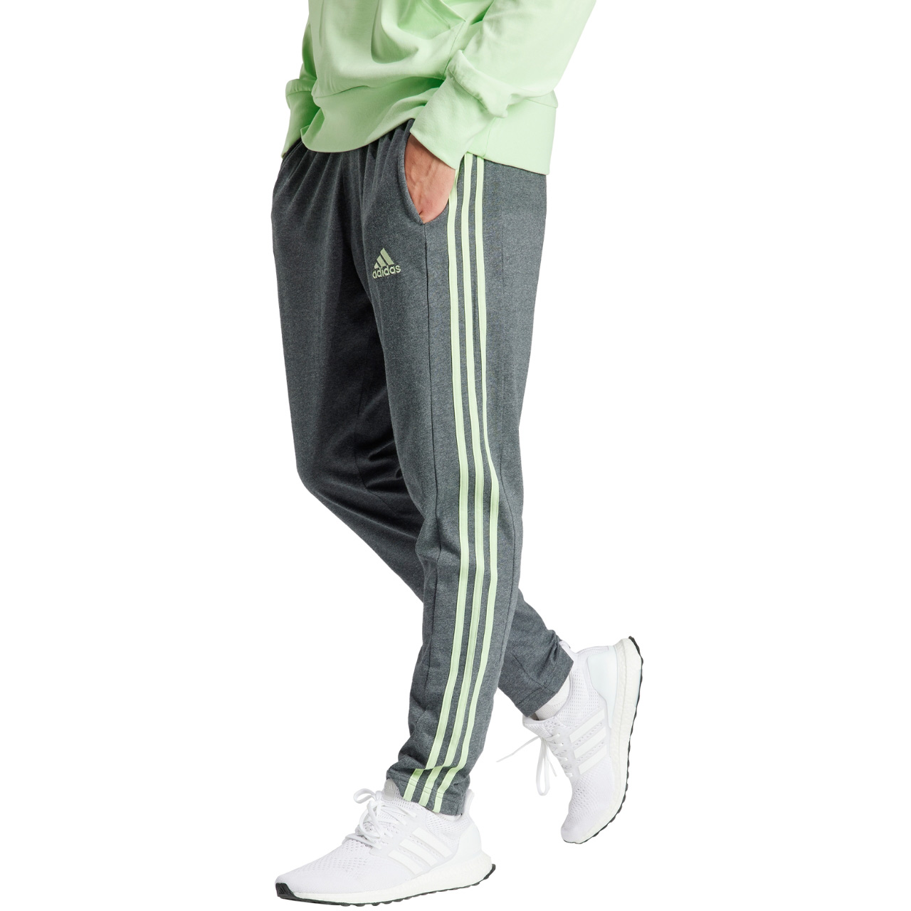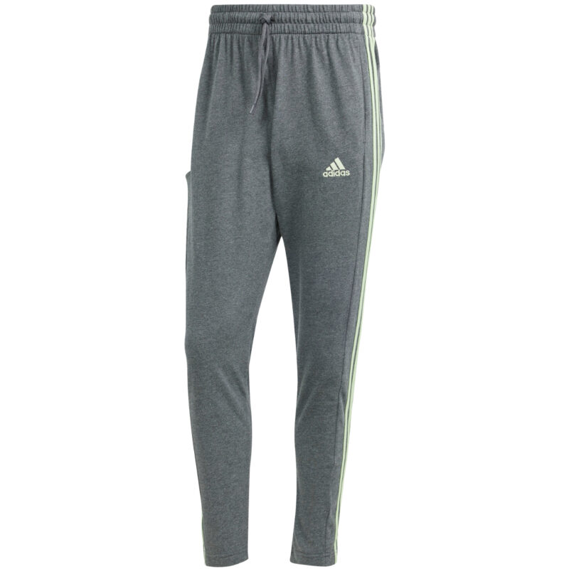 Spodnie męskie adidas Essentials Single Jersey Tapered Open Hem 3-Stripes ciemnoszare IS1367